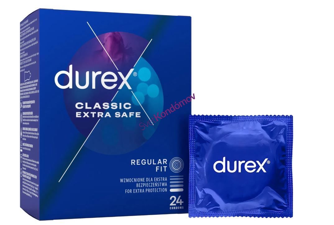 Durex Extra Safe je extra lubrikovaný kondóm, ktorý je prispôsobený na situácie s väčším trením (napr. na análny sex) tým, že je o niečo hrubší ako klasické kondómy.